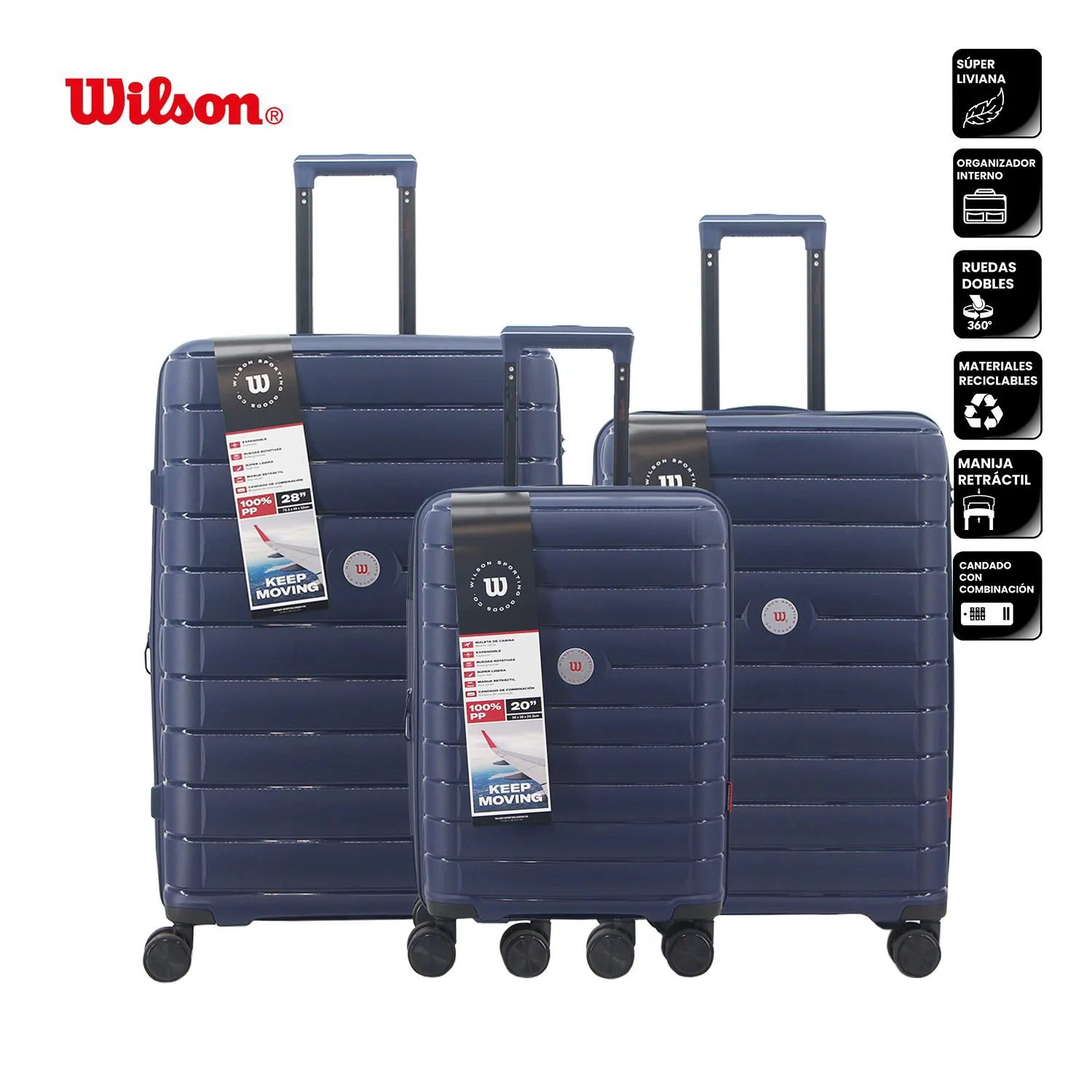 SET VALIJAS AZUL 20" 24" Y 28" WILSON